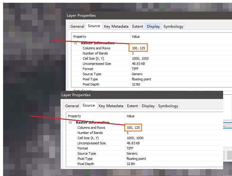 利用同一个矢量文件裁剪的栅格数据,尽管会出现栅格行列数不一致的情况,但行列数差别不大,而且通过观察可以看出两个数据行列数的具体差别。